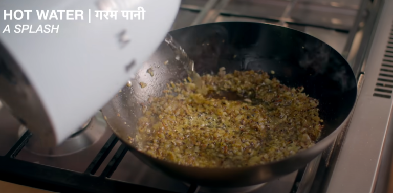 And after mixing everything, we will add some more hot water and cook till the spices start leaving oil from the sides.