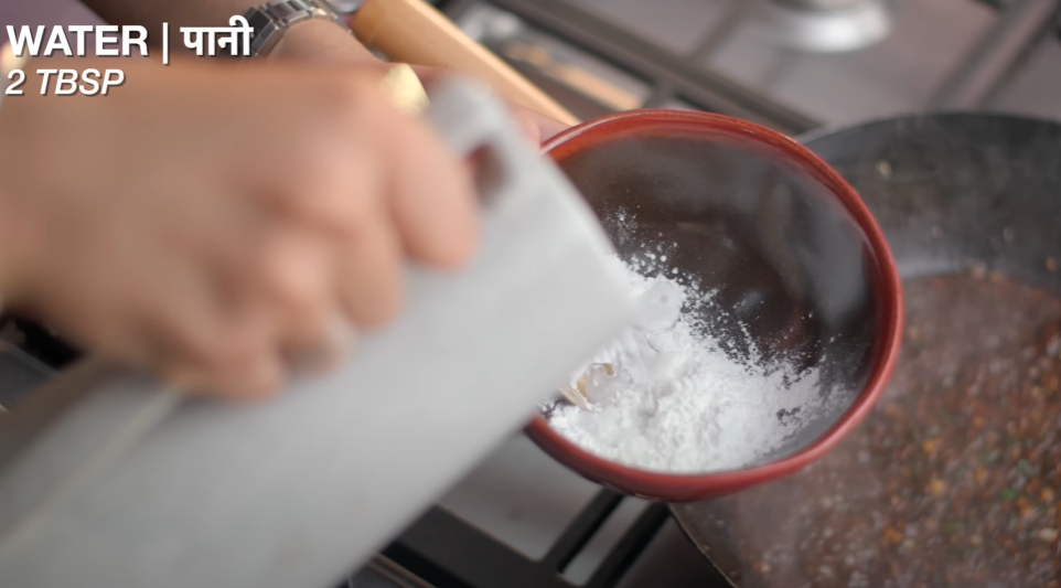 Step 10: After cooking for 3 to 4 minutes, now we will take 1 teaspoon cornflower in a bowl and add two water to it and make a solution and add it to the sauce and mix it well so that our sauce becomes a little thick