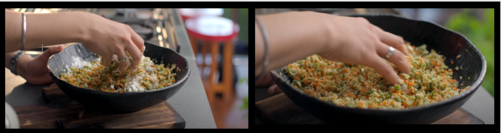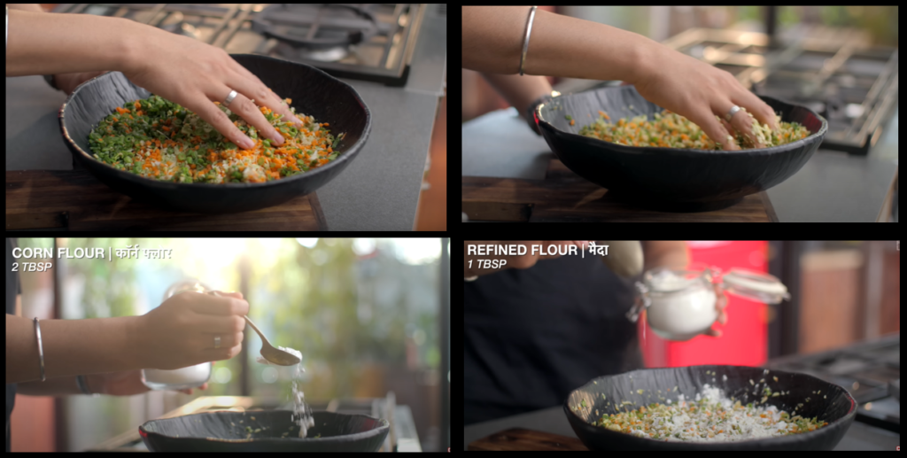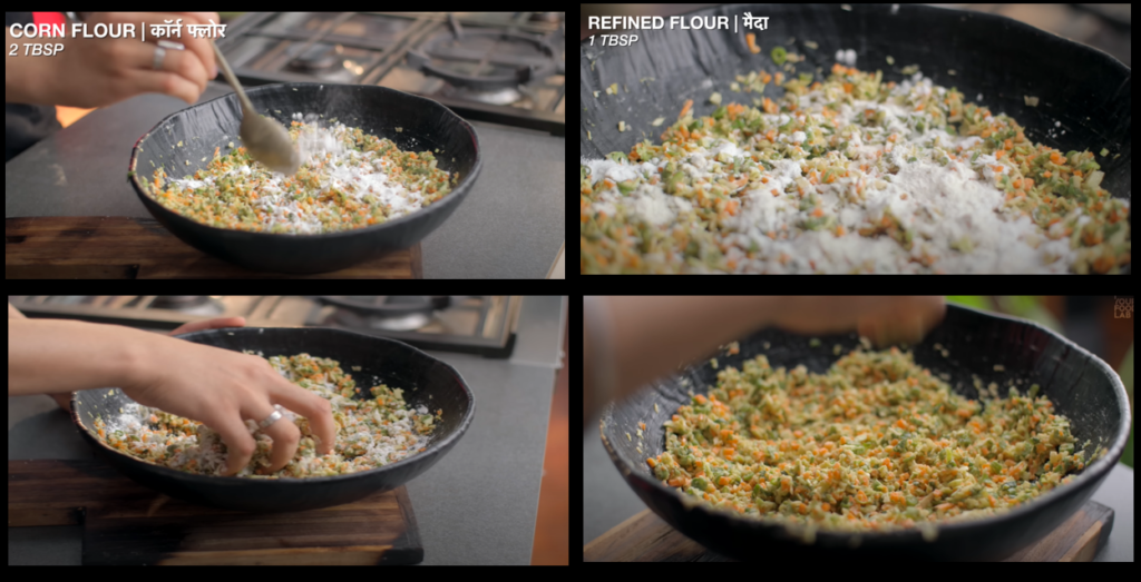Step 4: So even after adding 2 tsp cornflower and purpose flour, there is still moisture in it. So, we will add 2 tsp cornflower and 1 tsp purpose flour and mix it well.