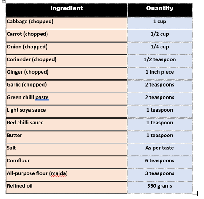 This dish is made with just a few ingredients like cabbage, carrot, soya sauce, white pepper, cornflower and a few spices.