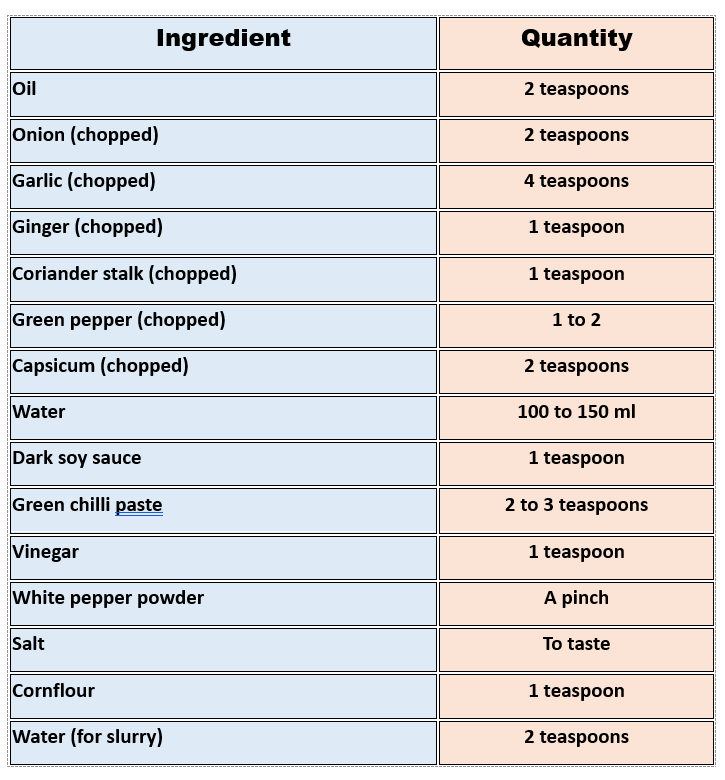 🟩 Ingredients for Manchurian Dry Sauce 🟩